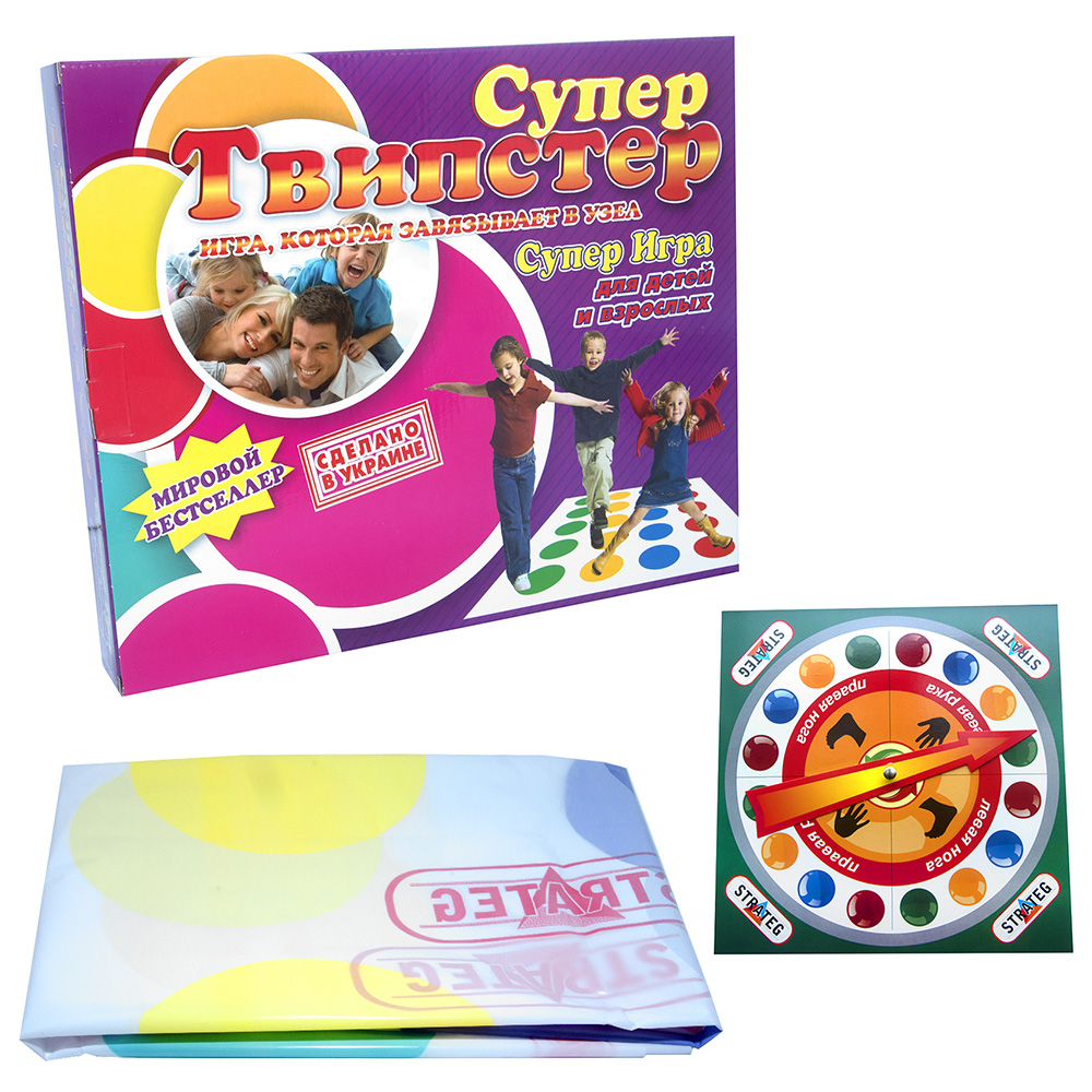 Веселая и красочная игра «Супер Твистер» для большой компании – лучший способ сдружиться, развлечься и испытать гибкость своего тела! В нее могут играть дети вместе с родителями, твистер станет любимым семейным развлечением! Победит самый ловкий и пластичный! Правила игры позволяют одержать победу за счет свой находчивости и правильно просчитанных ходов. На поле с разноцветными кружочками необходимо ставить ноги и руки на специальные круги, усложняя задачу сопернику. Иногда приходится практически завязываться в узел. Предложи друзьям присоединиться и играйте большой компанией.