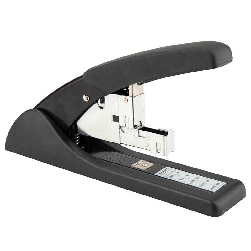Степлер Axent Exakt Pro 4930-A складається з металу; підошва – з міцного ABS-пластику. Гумові вставки на підошві запобігають ковзанню і захищають поверхню столу від подряпин. Прогумована ручка дозволяє запобігти ковзанню руки. Кнопковий механізм подачі контейнера для завантаження скоб.