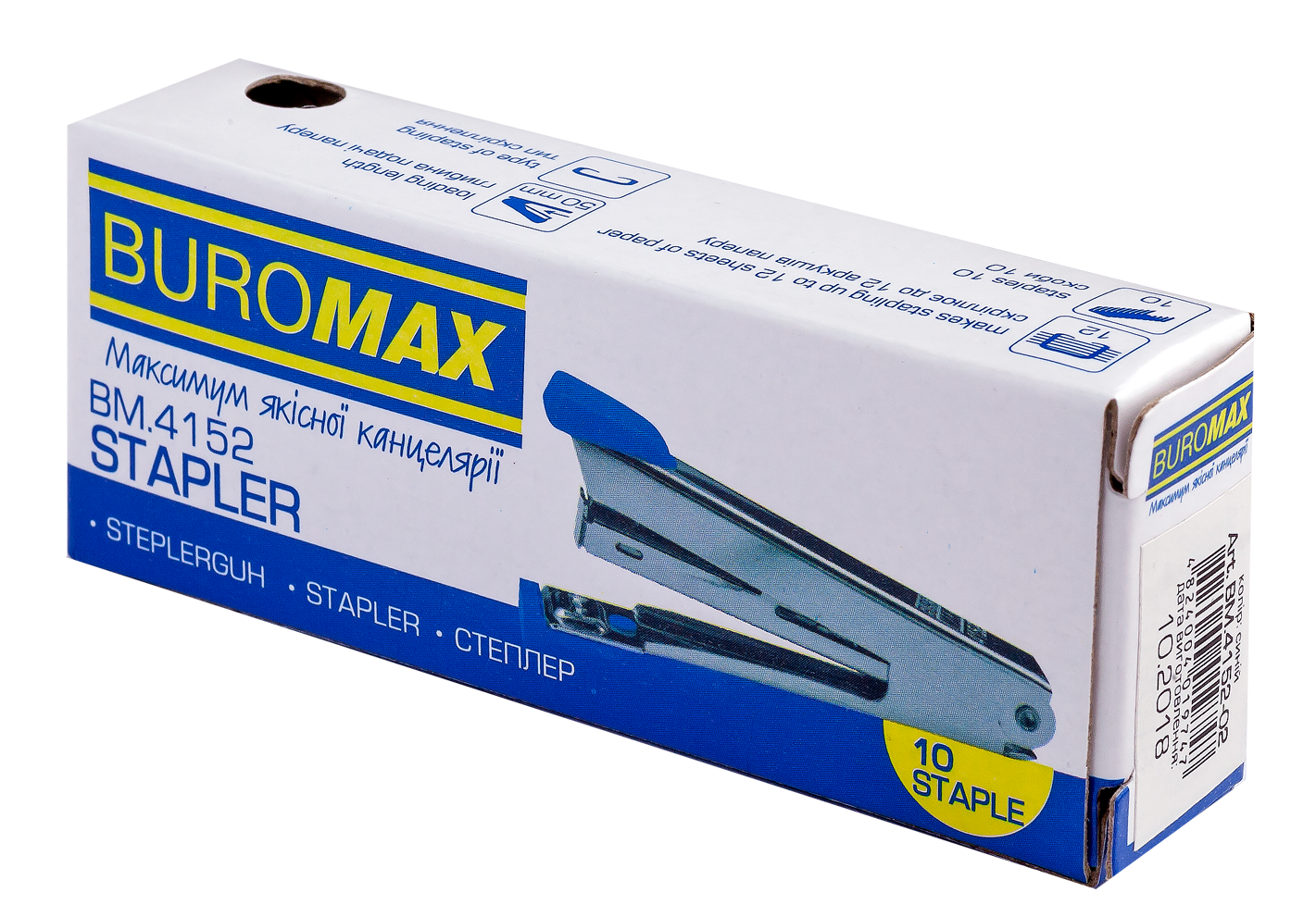 Металевий степлер BUROMAX підкреслить індивідуальність і стане незамінним атрибутом при роботі з документами. Скріплює заявлену кількість аркушів (12 арк. паперу 80 г / м²) і навіть більше. Корпус виготовлений з металу з пластиковою вставкою на важелі, яка перешкоджає ковзанню руки, що робить роботу з ним комфортною і металевою підошвою. Степлер підходить для щоденного використання як вдома, так і в офісі. Дана модель степлера оснащена вбудованим металевим дестеплером для вилучення скоби - зручність і економія часу! Матеріал: метал Пробивна потужність: 12 аркушів Кольори: чорний, синій, сірий, рожевий, світло-зелений Наявність дестеплера: так Тип скріплення: закритий Скоба: №10 Глибина закладання паперу: 50 мм Розміри степлера: 94х42х21мм