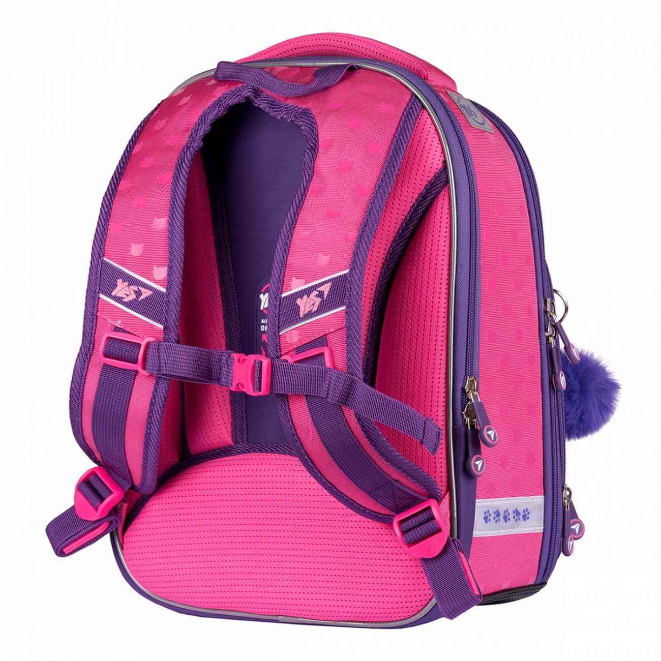 Рюкзак школьный YES S-30 JUNO ULTRA "Stylish kitties" Компактный и эргономичный рюкзак S-30 JUNO ULTRA, торговой марки YES, предназначен для детей младшего школьного возраста. Модель S-30 JUNO ULTRA разработана с учетом всех требований и потребностей данной возрастной категории. Характеристики: - Ортопедическая спинка рюкзака усилена смягчающими накладками, соответствует стандартам и сохраняет осанку ребенка; - Рельефные накладки с Air Mesh покрытием, обеспечивают воздухообмен, и предотвращают запотевание спины; - Массажные анатомические лямки "Майка" - широкие лямки анатомической, S-образной, формы. Лямки регулируются по длине, не давят на плечи; - Система "Quick setup" - позволяет, с помощью колец на конце ремня, легко регулировать длину лямок не снимая рюкзак со спины; - Поперечный ремень фиксирует положение рюкзака и обеспечивает равномерное распределение нагрузки на спину ребенка; - Предусмотрена корректировка положения поперечного ремня, в зависимости от роста ребенка; - Дно рюкзака уплотненное, защищено от влаги и грязи; - Мягкая уплотненная ручка с антибактериальным напылением; - Светоотражающие элементы для безопасности ребенка на дороге в темное время суток или в сумерках. Кол-во отделений: 3 Кол-во карманов: 1 Внутри: - отделы для правильной организации школьных принадлежностей - органайзер - карман с карточкой для идентификации - уплотненное отделение с флисовой подкладкой для гаджетов; Материал: полиэстер Бонус дизайна: - съемный брелок-подвес Размер: 36 х 27 х 17 см Размер по сетке: S Объем, л: 20 Вес, кг (+/- 10%): 0,83 Модель S-30 JUNO ULTRA, торговой марки YES - хит продаж! Артикул S-30 JUNO ULTRA Вес, кг (+/- 10%) 0,83 Возраст, лет 6-9 Дно Усиленное, с защитным покрытием, пластиковые ножки Количество карманов 1 Количество отделений 3